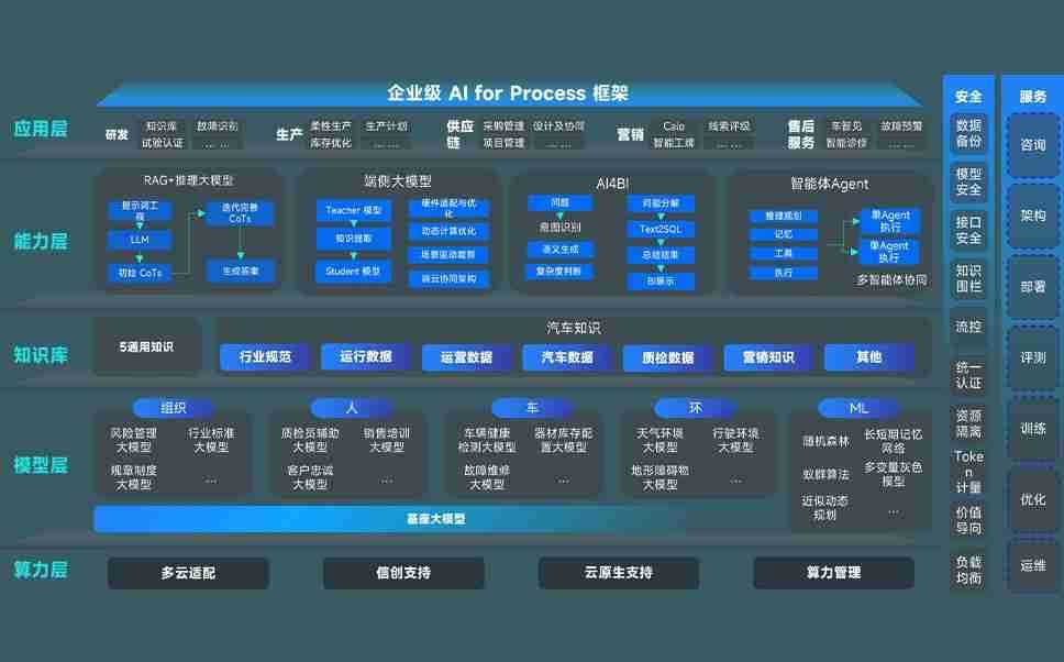 端到端的一站式AI工作空间深度融合了从企业战略规划到日常经营的全流程业务板块,,定向解决车企内部领域多、、部门多、、、、链条长、、场景碎片化等难题,,支持车企快速构建以AI为核心的生产力写作体系,,,实现任务执行与AI能力的无缝集成与交互